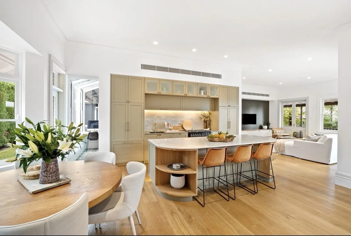 A bright, modern renovation featuring an open plan kitchen, dining and living area. An example of what Karmatecture’s Exploration Package can help you achieve.